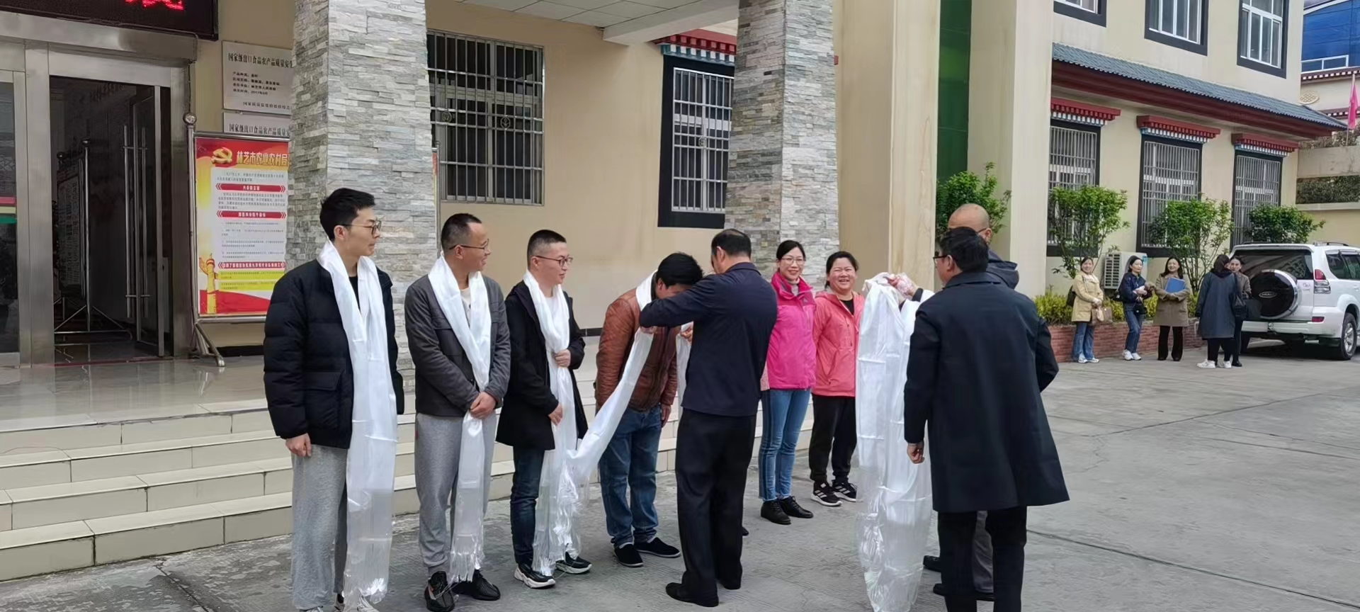5月17日,林芝市农业农村局轮换驻村队员,党组书记刘成利代表局党组为驻村队员献哈达。